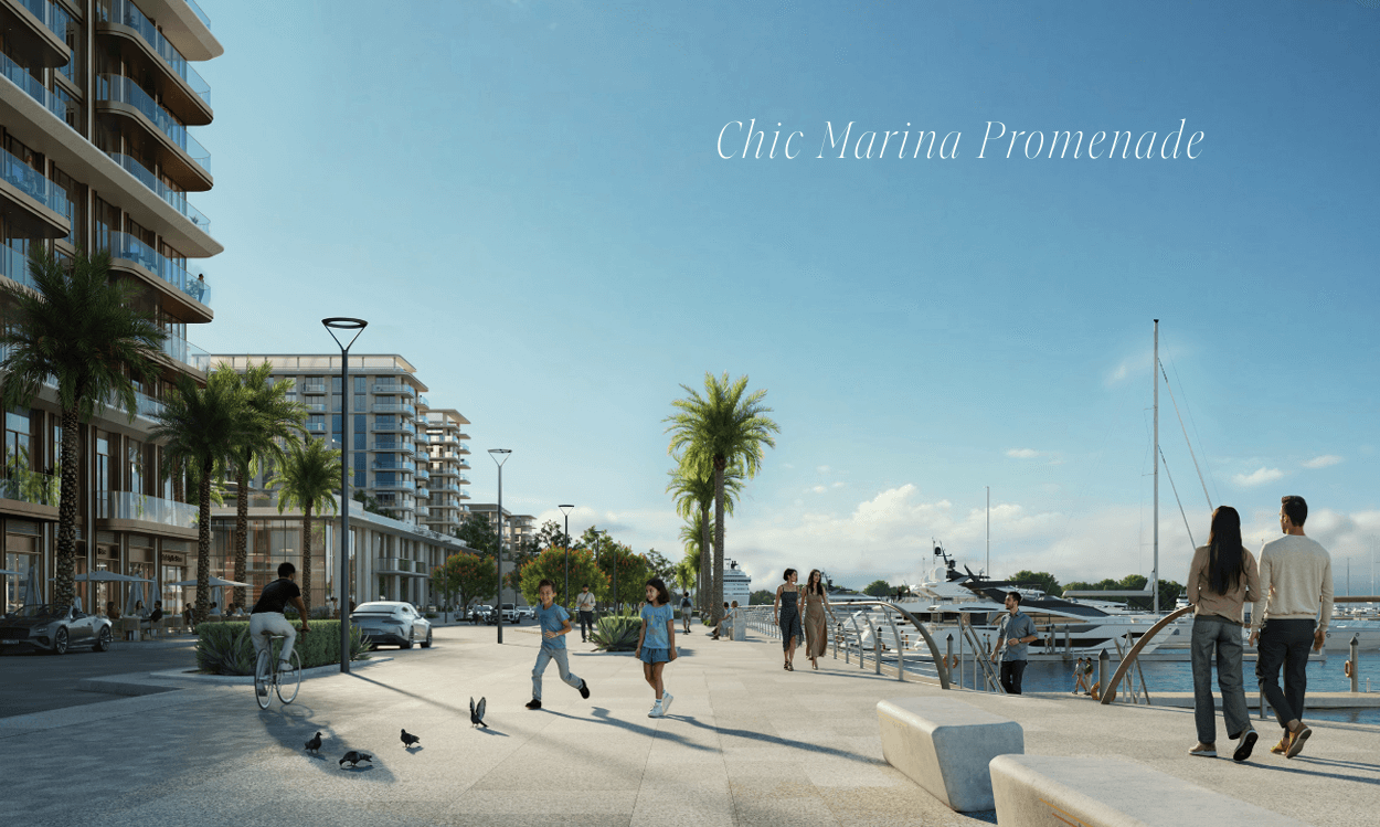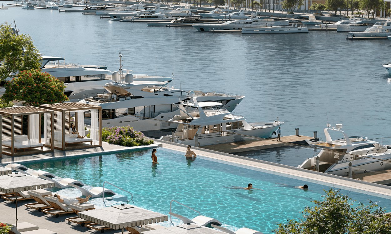 Picture a sweeping promenade lined with chic boutiques, inviting cafés, and world-class dining destinations. The air is filled with a sense of anticipation and elegance. Below, yachts of all sizes rest gently in their berths, a stone's throw from your doorstep. Here, every moment feels like a celebration. It's a realm of fearless ambition and infinite discovery, offering a sophisticated blend of a world-class yacht club, signature hotels, and unique retail experiences, all wrapped in unparalleled harbour elegance.