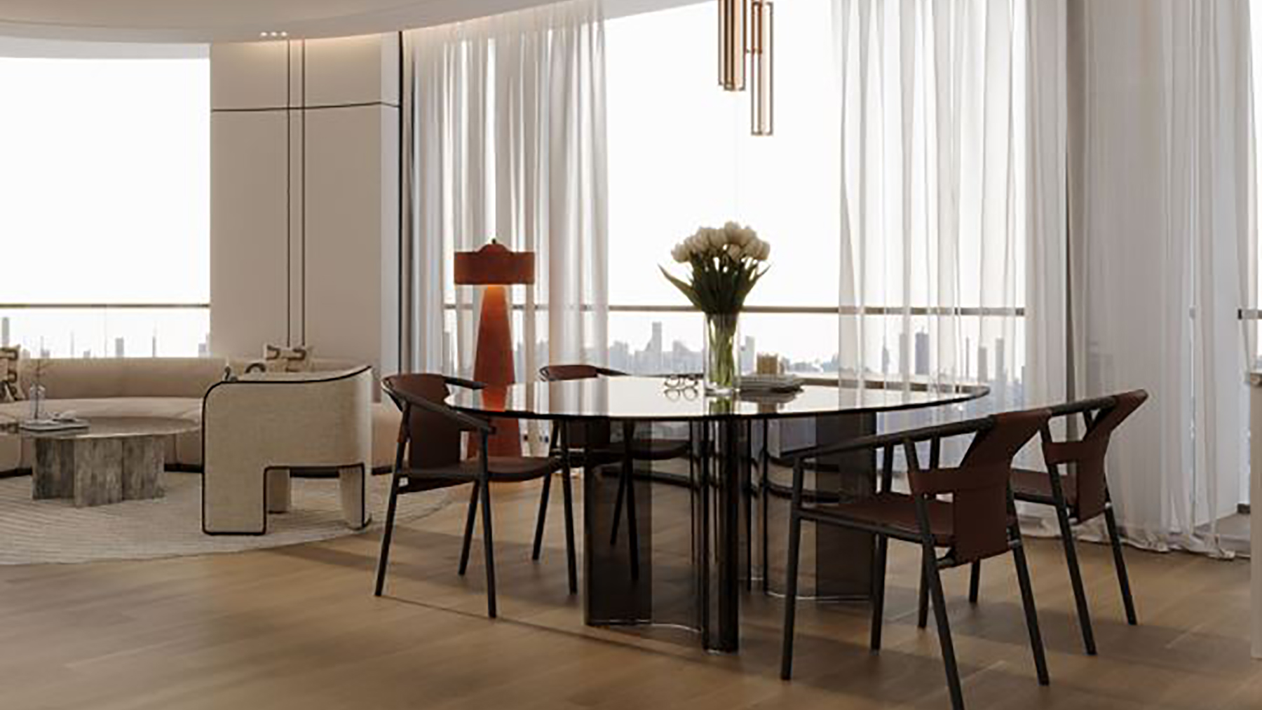 Its sleek silhouette is a study in contrasts—it belongs to the city's fabric yet stands apart with a striking, unique exterior. Every sweeping curve is intentional. Every shimmer is a fleeting glimpse of the refined life that awaits within.
