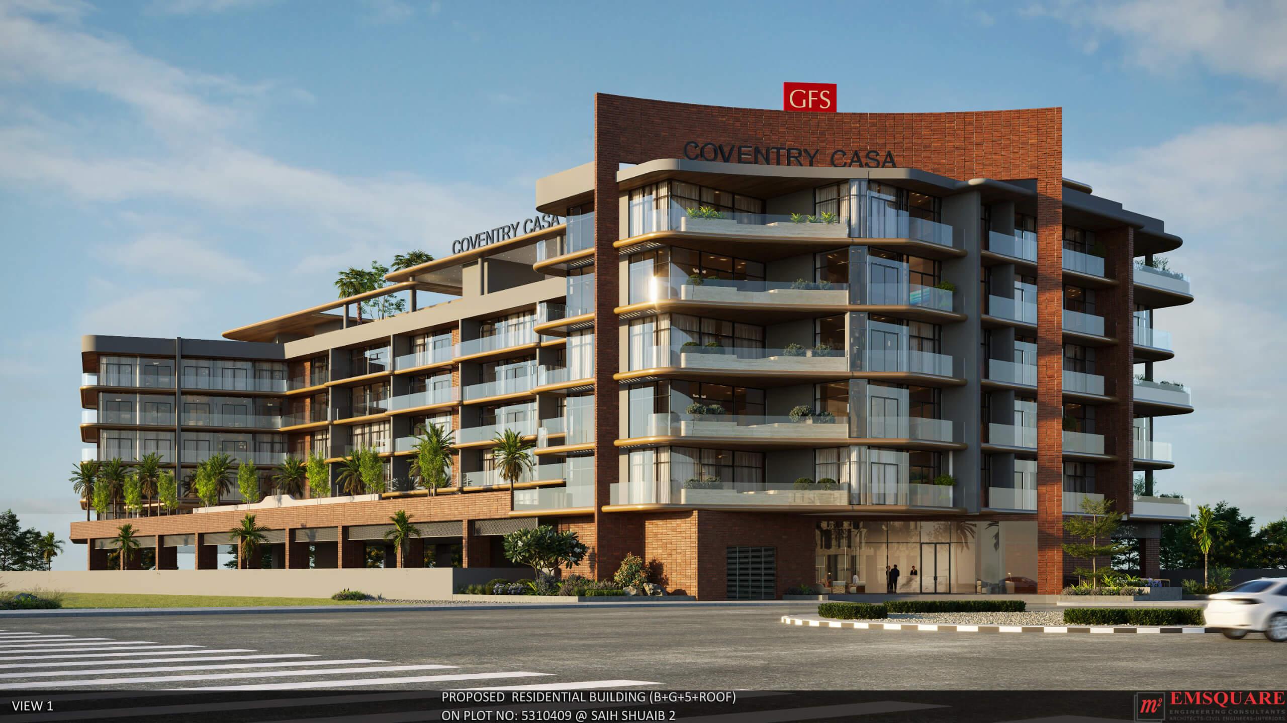 Coventry Casa is a thoughtfully designed residential building (B+G+5 + Roof) that prioritizes light, space, and functionality. The architecture is contemporary and clean, creating an immediate sense of calm and elegance.