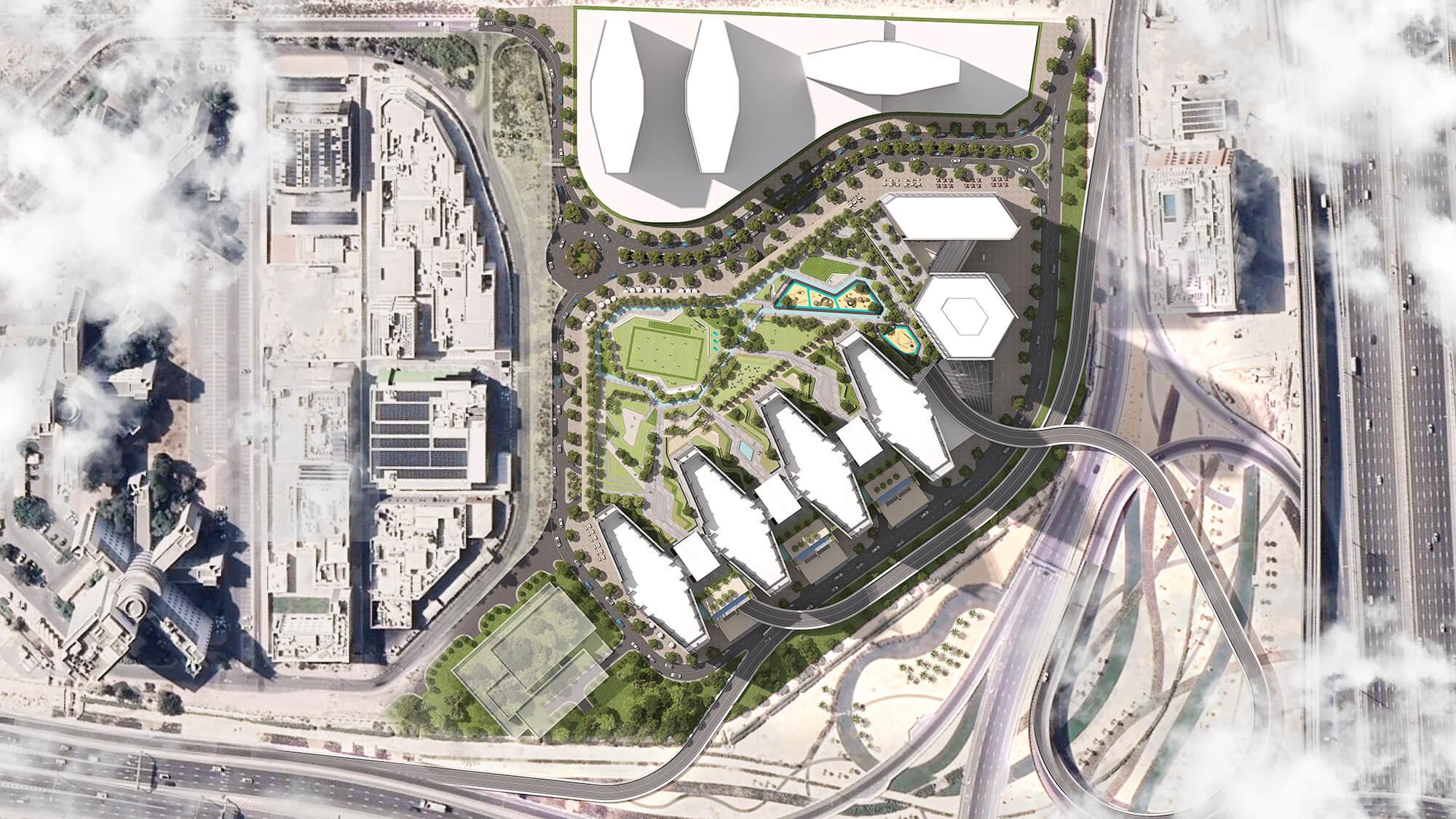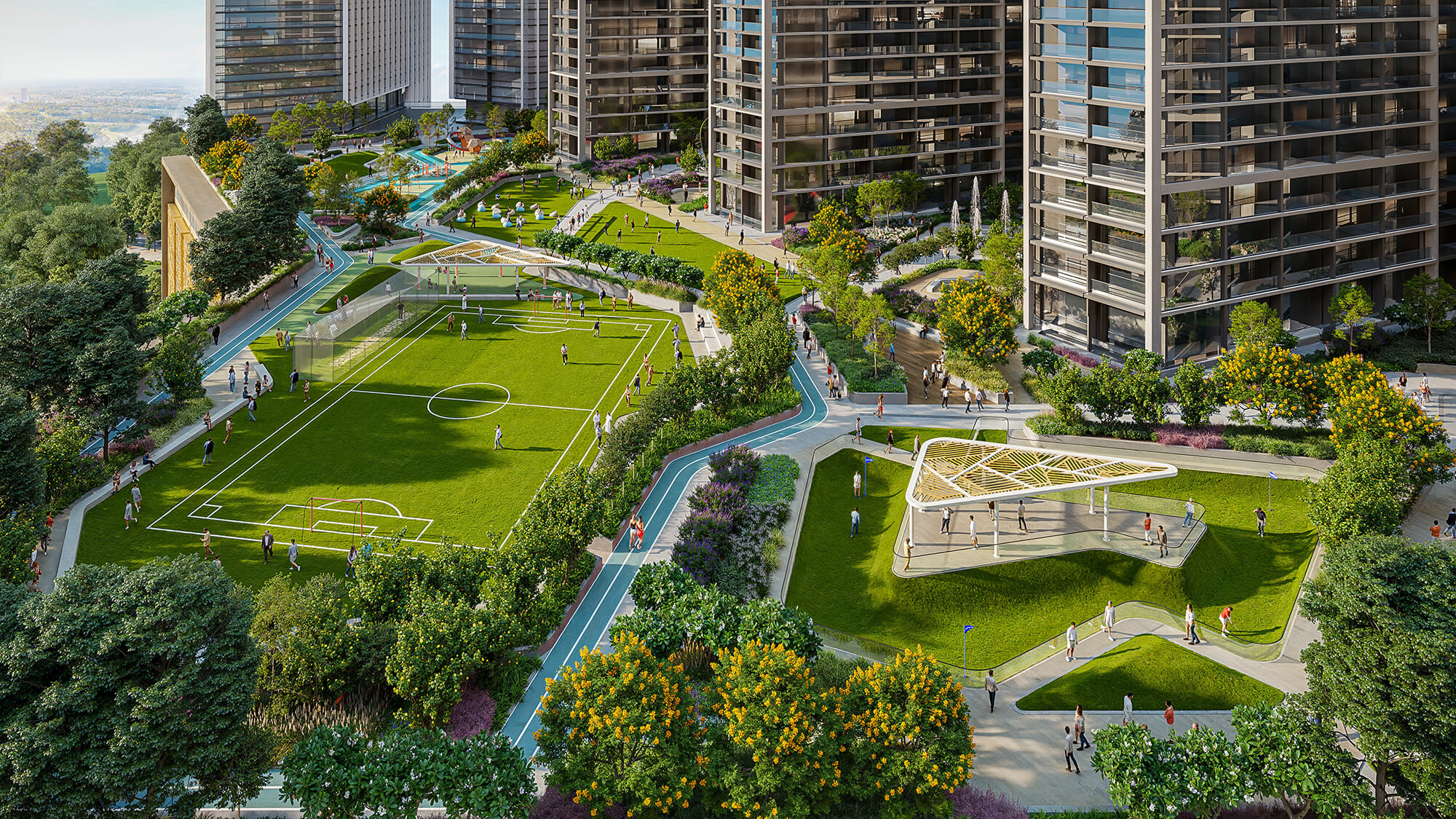 Life at Sobha Central is designed to bring people together. The development features a massive urban park on the podium level—a revolutionary concept in Dubai living.